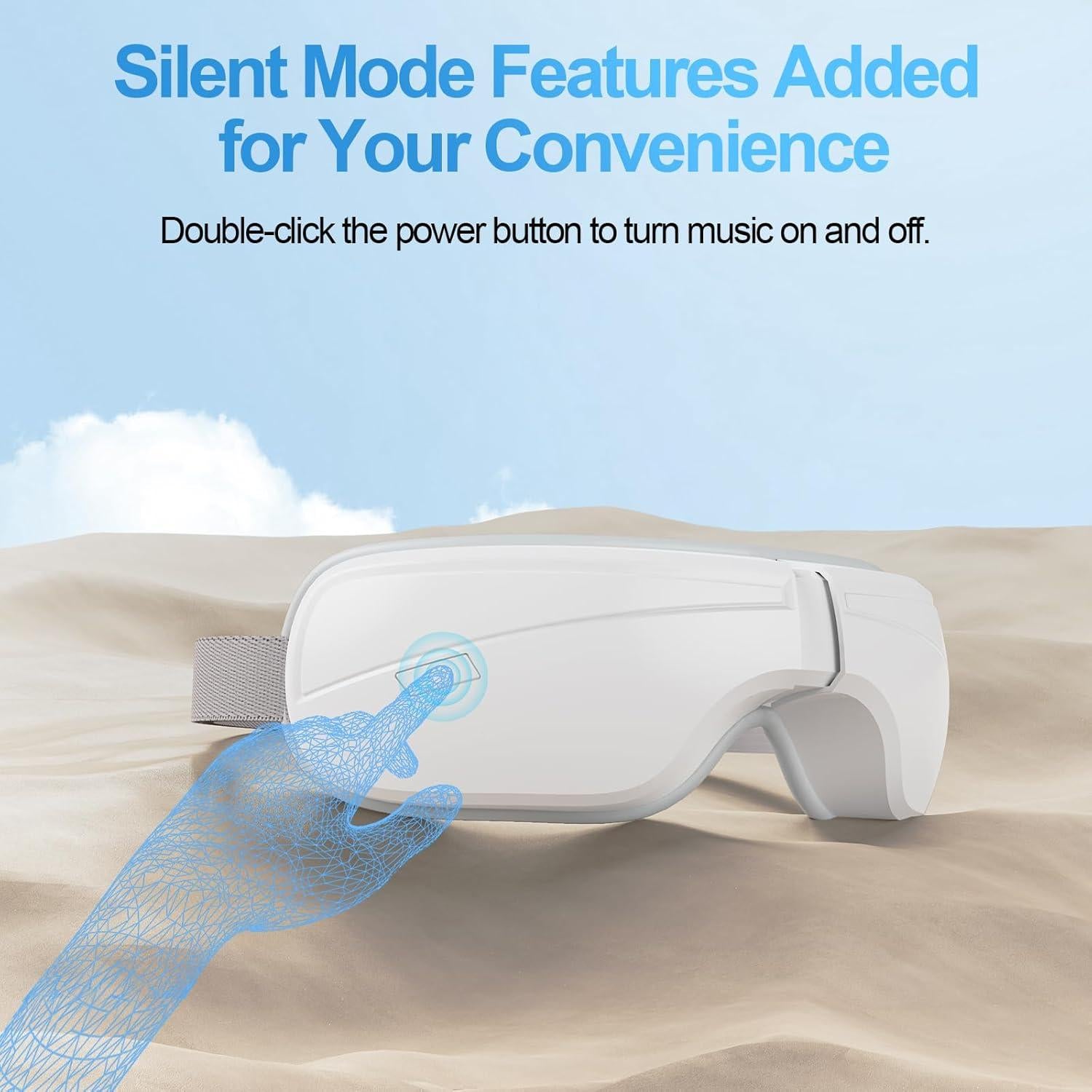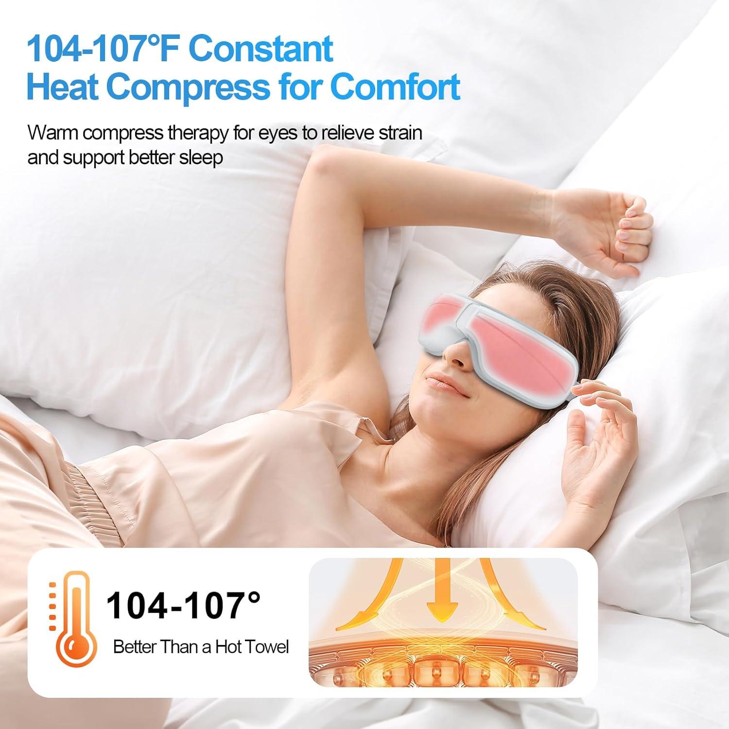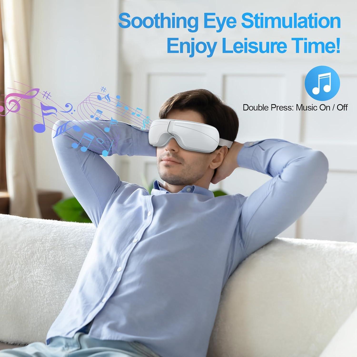 The Eye Massager combines gentle air pressure, soothing heat, and rhythmic vibration to relax the delicate muscles around your eyes. The warm compress increases blood circulation, helping to relieve dryness and improve oxygen flow, while the massage function reduces built-up tension in the temples and sinus area.